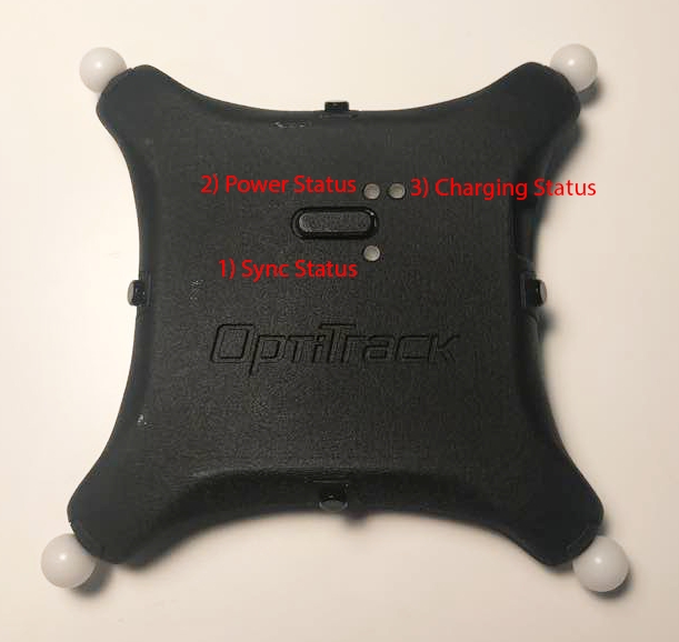 The bottom LED indicates the sync status. When the puck is successfully synchronized with a base station, it will start receiving sync packets, and this bottom LED will start blinking green roughly at 10 Hz rate: