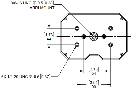 3/8"-16 threads 1X for optional ARRI-style anti-twist mount
