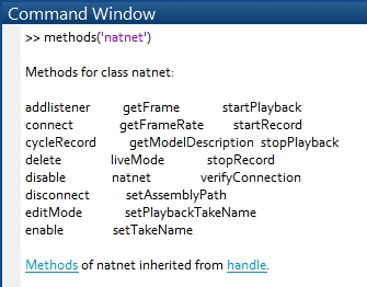 Class Properties: The available properties to the class can be seen with the following command, properties('natnet').