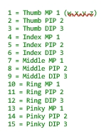 * Quaternion values are expected, resulting in total 60 float channels (15 finger nodes * 4 quat floats / node).