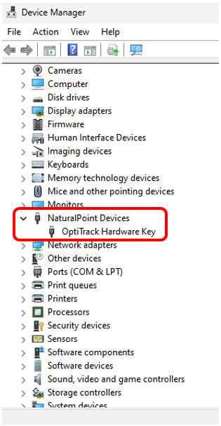 * The OptiTrack Security Key is listed as an *HID-compliant vendor-defined device*. There will likely be several of these on a user's system. If the security key is recognized by Windows, it is often the first in the list.&#x20;
