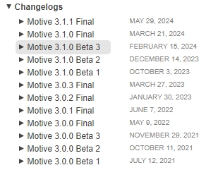 Motive release dates are also shown at-a-glance on the list of Changelogs: