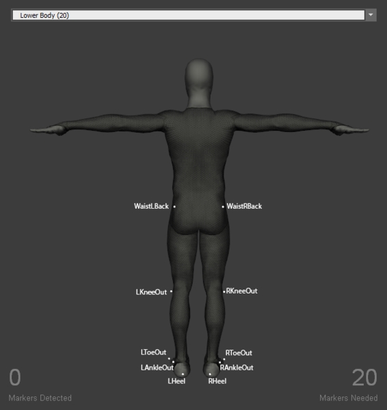 Place the WaistLBack and WaistRBack markers above left/right hip; about 10 cm above the hip joint.