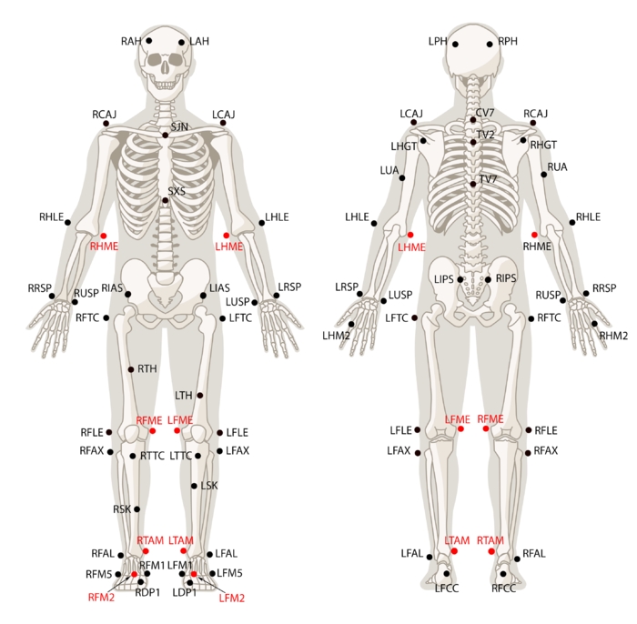 Place the markers on the shin bone near the midline of the lower leg. This marker is placed for distinguishing left and right side of the Skeleton. For best results, slightly offset the height of right and left marker to introduce an asymmetry.
