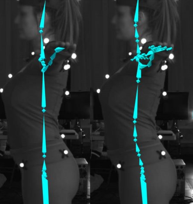The 7 Segment Spine model has five spine bones and two neck bones. This model accounts for the natural curves in the human spine and allows for better alignment between the Skeleton in Motive and the actor.