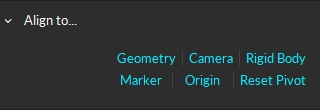 The Align To... section contains preset options for aligning the pivot point of a rigid body.