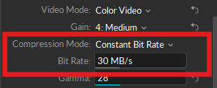 In the Constant Bit-Rate mode, Prime Color cameras vary the degree of image compression to match the data transmission rate given under the Bit Rate settings. At a higher bit-rate setting, the captured image will be compressed less. At a lower bit-rate setting, the captured image will be compressed more to meet the given data transfer rate. Compression artifacts may be introduced if it is set too low.