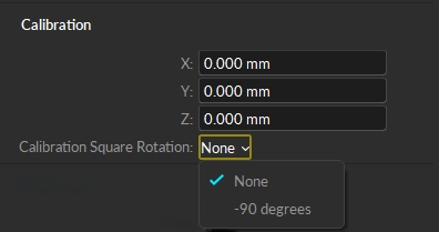 Determines the location of the force plate relative to the calibration square. Use None (the default) if placing the calibration square on top of the force plate in the lower right corner. Select -90 degrees if the square is placed next to the force plate, against the lower right corner.