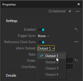 Select the output port that the force plate amplifier is connected to on the eSync2. This setting is only visible when Reference Clock Sync is enabled.