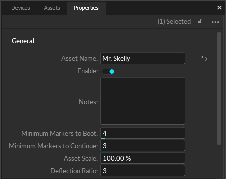 This page covers properties specific to skeletons. For general information on using and customizing the Properties pane, see the Properties Pane page. For detailed descriptions of properties for other asset types or devices, please see the following pages: