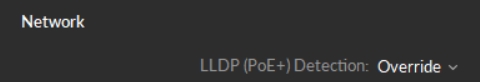 (Default: Override) Enable detection of PoE+ switches by High Power cameras (Prime 17W, PrimeX 22, Prime 41, and PrimeX41). LLDP allows the cameras to communicate directly with the switch and determine power availability to increase output to the IR LED rings.