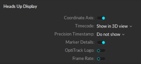 (Default: off) Display the OptiTrack logo in the top right corner.