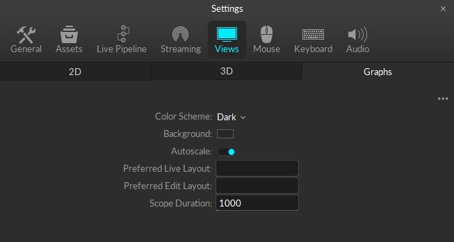 The Graphs tab under the Views settings contains display settings for the Graph Pane. These are all standard settings.