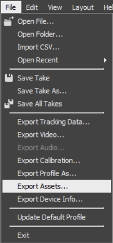 Assets can be exported into the Motive user profile file (.MOTIVE), where they can then be imported into different takes without creating a new asset.
