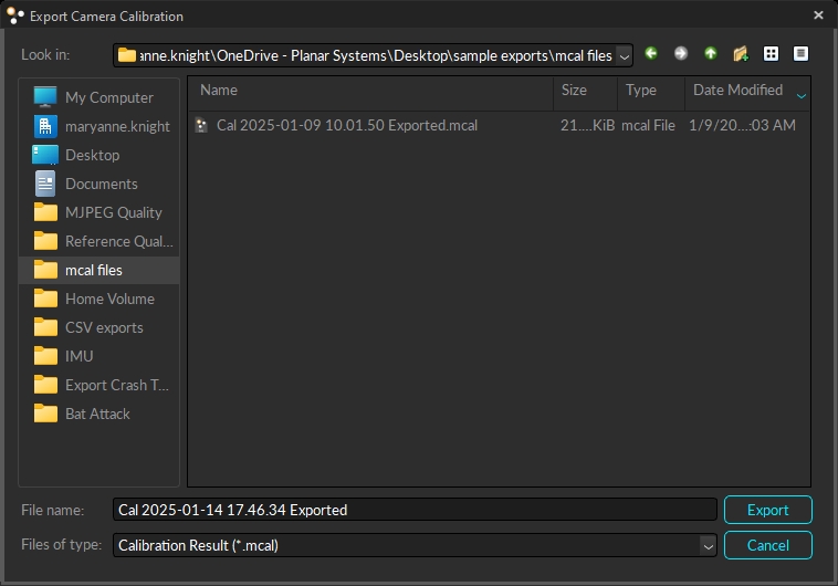 From the File menu, select Export Calibration...