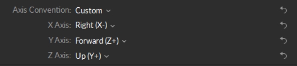 Select the Custom axis convention to open up the X/Y/Z axis for editing. This creates a drop-down menu next to each axis that allows you to change it.