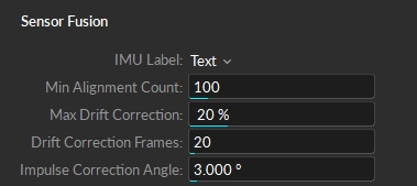 If the IMU label is enabled in the Rigid Body Properties, the Viewport will display the status of the IMU Sensor Fusion process.