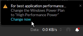 Windows power saving mode limits CPU usage, which can impact Motive performance.