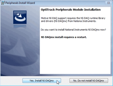 At the Custom Setup section of the installation process, you will be prompted to choose whether to install the Peripheral Devices along with Motive. If you plan to use force plate, NI-DAQ, or EMG devices along with the motion capture system, the Peripheral Devices must be installed.