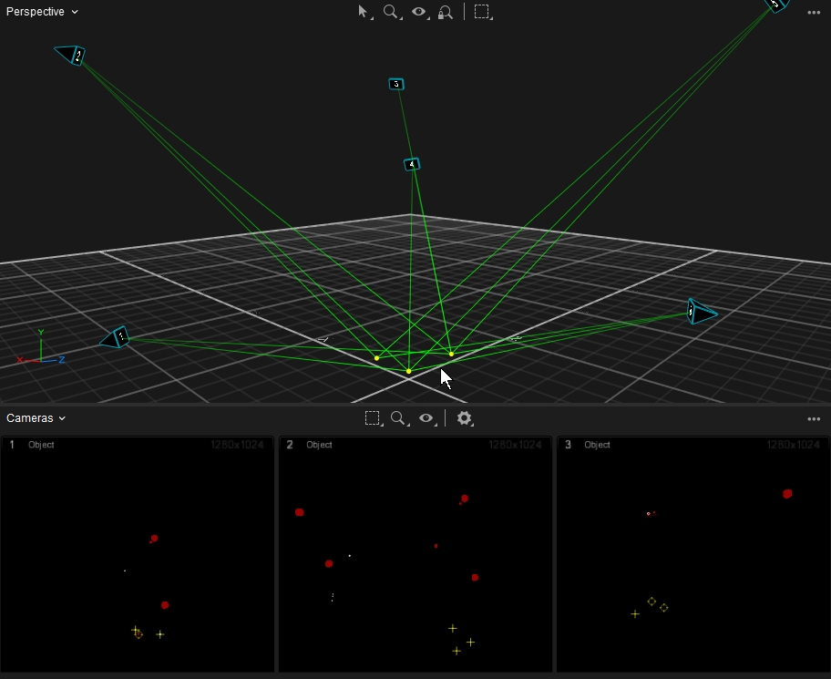 Reconstruction is the process of deriving 3D points from 2D coordinates obtained by captured camera images. When multiple synchronized images are captured, the 2D centroid locations of detected marker reflections are triangulated on each captured frame and processed through the solver pipeline to be tracked. This involves the trajectorization of detected 3D markers within the calibrated capture volume and the booting process for the tracking of defined assets.