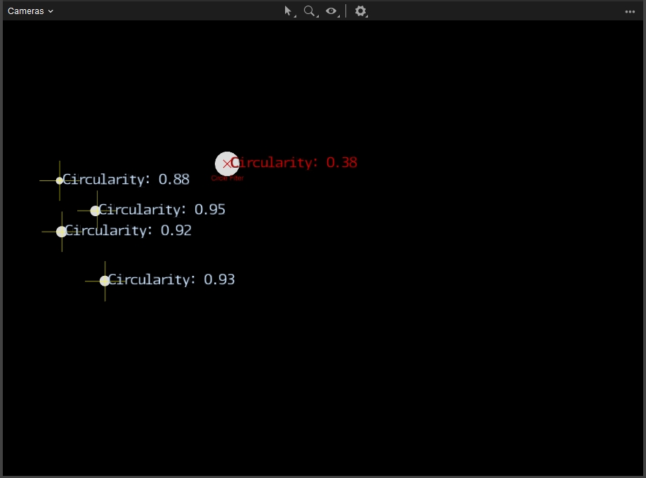 The Circularity value establishes the degree (as a percentage) to which a reflection can vary from circular for the camera to recognize it as a marker. Only reflections with circularity values greater than the defined threshold will be identified as marker reflections.