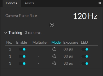 Tracking mode vs. Reference mode: Only cameras recording in tracking mode (Object or Precision) contribute to reconstructions; Cameras in reference mode (MJPEG or Grayscale) do NOT contribute. For more information, please see the Camera Video Types page.