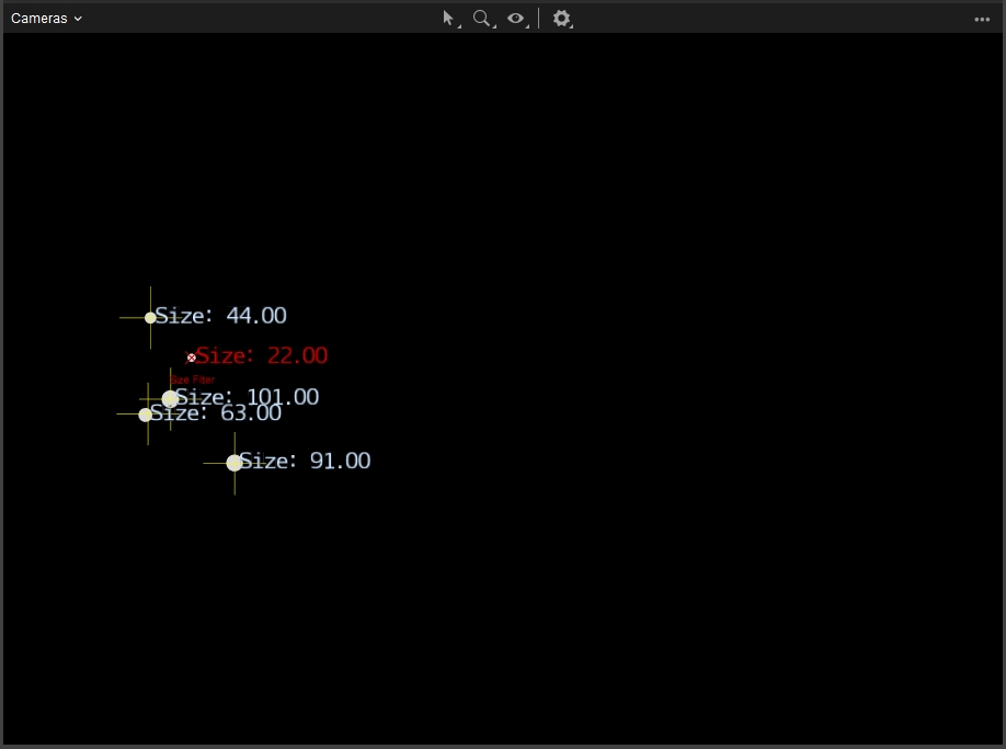 Only markers that are close to the size boundaries but not within them will display in the Camera view in red. Markers with a significant size variance from the limits will be filtered out of the Camera view.