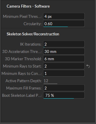 The Live Pipeline settings control tracking quality in Motive. Adjust these settings to optimize the 3D data acquisition in both live-reconstruction and post-processing reconstruction of capture data.