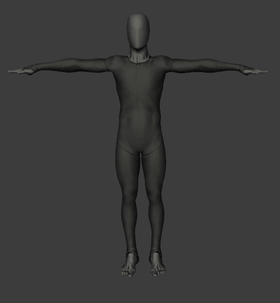 The A-pose is especially beneficial for subjects who have restricted mobility in one or both arms. Unlike the T-pose, arms are abducted at approximately 40 degrees from the midline of the body, creating an A-shape. There are three different types of A-pose: Palms down, palms forward, and elbows bent.