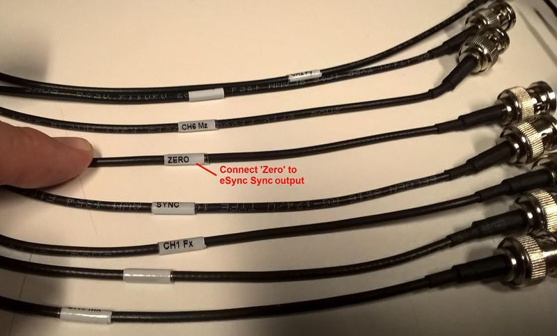 The ZERO cable from the amplifier needs to be connected to the output port of the eSync for synchronization with the camera system.