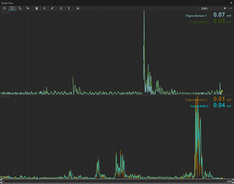 As a last step, use the Graph pane to check the EMG data coming through the enabled channels.