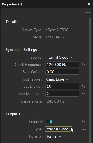 In the Devices pane, select the eSync among the listed devices. This will list out the synchronization settings in the Properties pane for the selected eSync.