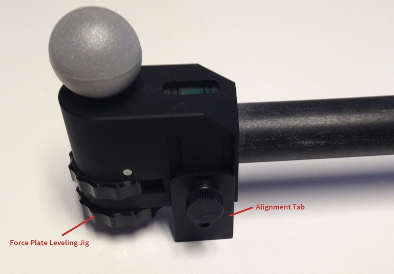 On the CS-400 calibration square, pull the force plate alignment tabs out and put the force plate leveling jigs at the bottom. The leveling jigs align the calibration square to the surface of your force plate. The alignment tabs allow you to put the CS-400 flush against the sides of your force plate giving the most accurate alignment.