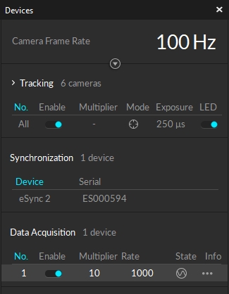 5. [Motive : Devices pane] Make sure the NI-DAQ device enabled by checking the box next to the device.