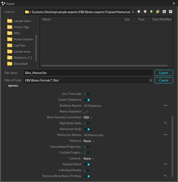 Bone Naming Convention is set to FBX by default. This setting does not apply to trained markerset assets.