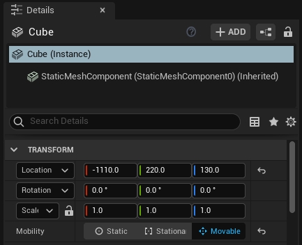 Add a camera actor from the Place Actors pane or a static mesh from the project into your scene. For the static meshes, make sure their Mobility setting is set to Movable under the Transform properties.