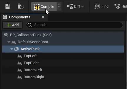 An Active Puck can serve as a lens calibration device in Unreal Engine by aligning calibration points to the markers at each of the four corners.