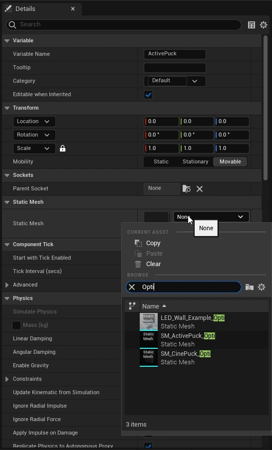This section walks the user through adding the puck static mesh to a project and aligning it with the puck streaming from Motive.