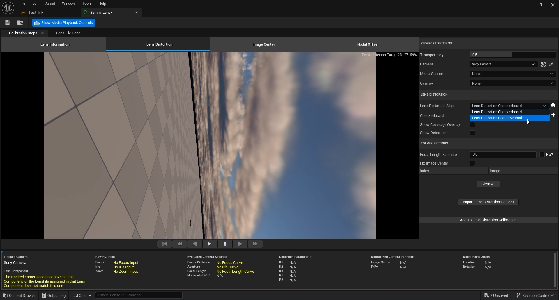 In the Lens Distortion Algo setting on the right, select Lens Distortion Points Method.