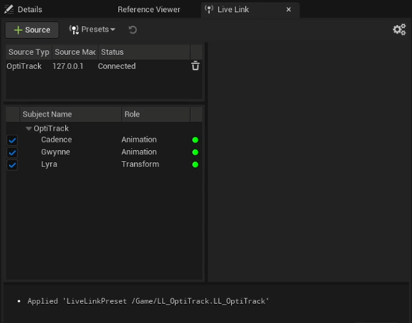 Add OptiTrack Live Link Display