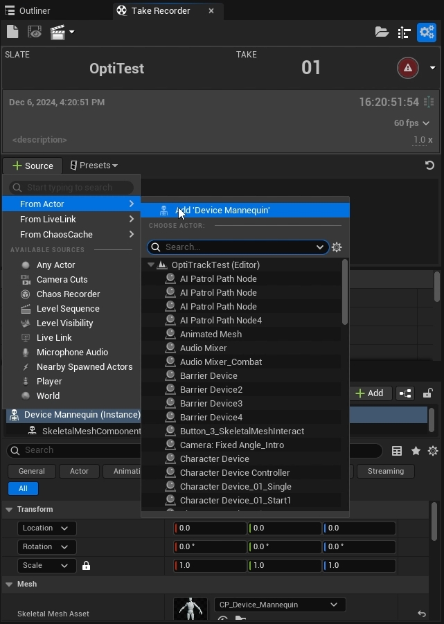 Once all of the characters are configured, the next step is to record the animation using the Take Recorder and Sequencer in Unreal Editor.