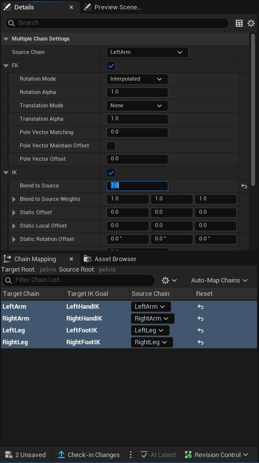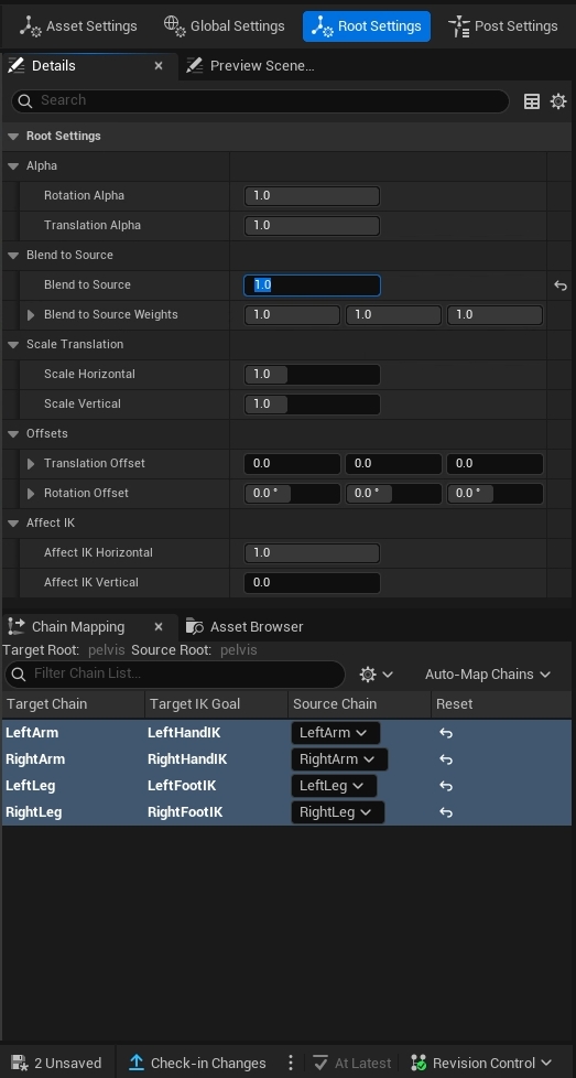 Retarget Asset: Select the IK Retargeter created in an earlier step (RTG_Motive_FN in our example).