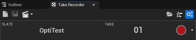 To begin recording, click the large red Play button on the right edge of the Slate in the Take Recorder: