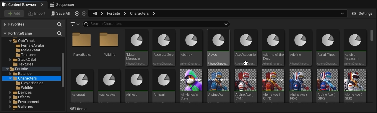 Fortnite has a large selection of characters available, all based on the Device Mannequin skeleton. To add a character to the scene from the Content Browser: