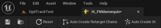 All skeletons in Unreal Editor are based on the standard Fortnite mannequin. Animation is applied to the mannequin rather than using an animation blueprint. In this example, we will use the Fortnite Mannequin to build an IK Rig to receive data from the OptiTrack skeletons.