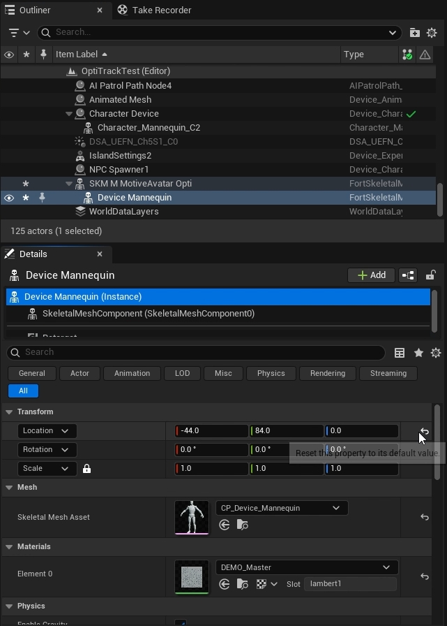 Select the Fortnite Mannequin to display its properties in the Details pane.