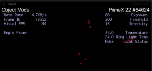 The cameras will heat up with extended use, and change in internal hardware temperature may also affect the capture data. For this reason, avoid capturing or calibrating right after powering the system. Tests have found that the cameras need to be warmed up in Live mode for about an hour until it reaches a stable temperature. Typical stable temperatures are between 40-50 degrees Celsius or 25 degree Celsius above the ambient temperature. For Ethernet camera models, camera temperatures can be monitored from the Cameras View in Motive (Cameras View > Eye Icon > Camera Info).