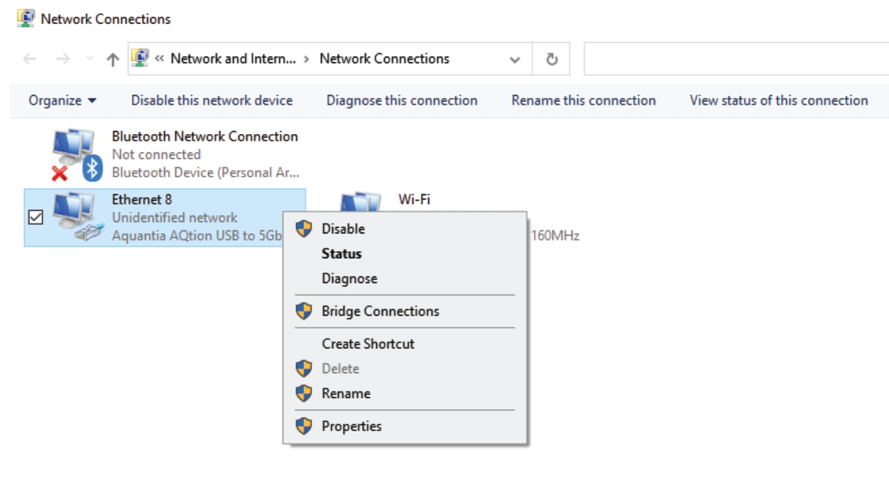 To configure the NIC, type Network in the Windows search bar to find and open the Control Panel to View Network Connections.