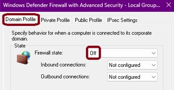 Set a Local Group Policy to disable Private, Public, and Domain firewalls.