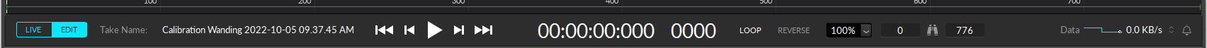 In the **Edit Mode**, the cameras are not active, and Motive is processing loaded *Take* file (pre-recorded data). The playback controls will be available in the control deck, and the small timeline will appear at the top of the control deck for scrubbing through the recorded frames. In this mode, you can review the recorded 3D data from the TAK and make post-processing [edits](https://docs.optitrack.com/v2.3/motive/data-editing) and/or manually assign marker [labels](https://docs.optitrack.com/v2.3/motive/labeling) to the recorded trajectories before [exporting](https://docs.optitrack.com/v2.3/motive/data-export) out the tracking data. Also, when needed, you can switch to the [2D mode](https://docs.optitrack.com/v2.3/motive/reconstruction-and-2d-mode), and view the real-time reconstructed 3D data to understand how the 3D data was obtained and perform post-processing reconstruction pipeline to re-obtain a new set of 3D data.